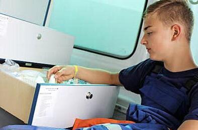 Doch bis es so weit ist, erkunden die Jugendlichen erst einmal die Lkw, die bereits da sind. Beispielsweise den sogenannten Multi. Er ist für die Lagerung und den Transport zuständig. Sofort wird das Ungetüm von den Jugendlichen in Beschlag genommen. Doch in das Führerhaus zu kommen, gestaltet sich gar nicht so einfach. Ein richtiger Kraftakt.