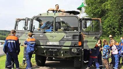 Am dritten Tag des Zeltlagers der Jugendfeuerwehren aus dem Kreis Haßberge wartet hoher Besuch an der alten Schule bei Sulzbach. Die Bundeswehr und das Bayerische Rote Kreuz stellen ihre Berufe vor und erzählen aus dem Alltag.
