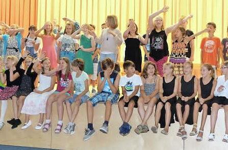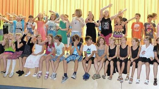 Ein fulminantes und emotionales Finale boten die Viertklässler: Im Gemeinschaftschor sangen sie "Ja, wir sagen dir auf Wiederseh'n" Der Abschlussfeier ging ein ökumenischer Gottesdienst in der St. Wolfgang- Kirche voraus, der von den Liturgen Gemeindereferent Matthias Beck und Pfarrer Michael Foltin unter Einbeziehung der Schüler gestaltetet wurde.