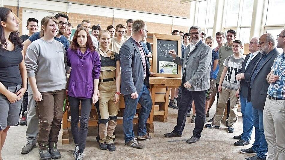 Schulleiter Anton Staudigl lobte die Berufsschulklasse, aber vor allem auch die gute Netzwerkarbeit zwischen der Schule, Kreishandwerkerschaft und dem Landratsamt Coburg. "Die Genussregion trifft hier auf die Bildungsregion", freute er sich. Die Berufsschüler haben in ihrer dualen Ausbildung die hochwertigen Tafeln in handwerklicher Arbeit mit regionalen Werkstoffen wie Eichenholz aus heimischen Wäldern und Schiefer aus dem Frankenwald gefertigt.