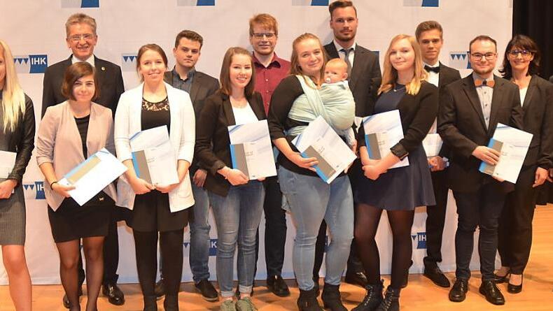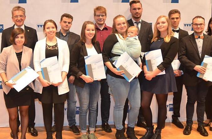 Diese Absolventen wurden für ihr Prüfungsergebnis mit der Note eins besonders geehrt: Lea Graf, Kronach, Kauffrau im Einzelhandel (Denn's Biomarkt Kronach); Melanie Gutbier, Lautertal, Technische Produktdesignerin Fachrichtung Produktgestaltung- und konstruktion (ASS-Einrichtunssysteme, Stockheim); Olaf Hoffmann, Jena, Produkttechnologe (Paul Rauschert, Steinbach am Wald); Dominik Köstner, Nordhalben, Industriekaufmann (Loewe Technologies, Kronach); Tobias Pator, Schwarzenbach am Wald, Industriekaufmann (Dr. Franz Schneider VerwaltungsGmbH, Kronach); David Scherbel, Pressig, Verfahrenstechniker für Kunststoff- und Kautschuktechnik Fachrichtung Formteile (Horst Scholz GmbH & Co. KG. Kronach); Sarah Schmittlein, Weißenbrunn, Verkäuferin (Norma Lebensmittelfilialbetrieb Kronach); Nina Schütz, Stockheim, Verkäuferin (Aldi Stockheim); Tobias Wich, Marktrodach, Industriekaufmann (Lear Corporation, Kronach); Stephan Wiefel, Probstzella, Industriemechaniker Einsatzgebiet Instandhaltung (Wiegand Glashüttenwerke, Steinbach am Wald); Denise Wilhelm, Marktrodach, Verkäuferin (Expert, Kronach) sowie Stefanie Wohlrath, Weißenbrunn, Industriekauffrau (Dr. Franz Schneider VerwaltungsGmbH, Kronach).