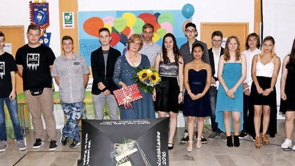 Mit einem lachenden und einem weinenden Auge verabschiedete Rektorin Sieglinde Gröger zusammen mit Klassleiterin Rega Hanika die Schüler der neunten Klasse ...