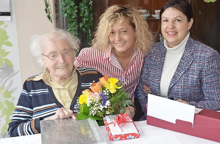 Die Heimleiterin Karin Büttner gratulierte auch im Namen des Personals recht herzlich. Als Babette Thumser das Licht der Welt am 8. März 1917 erblickte, regierte noch Kaiser Wilhelm II. in Deutschland und es tobte der Erste Weltkrieg. An viele Entbehrungen gerade im Zweiten Weltkrieg kann sie sich noch gut erinnern. Ist aber eine humorvolle Natur geblieben, wie die Geburtstagsgäste bestätigen konnten.