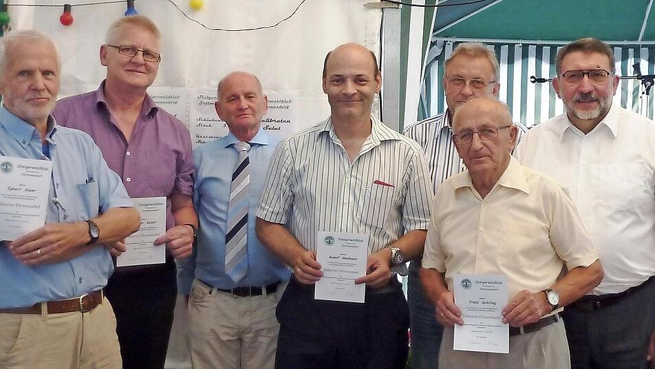Der Vorsitzende des Hauptvereins Steigerwaldklub, Georg Zipfel, appellierte an die junge Generation, Führungspositionen in Vereinen zu übernehmen, und überreichte Wächtler das silberne Ehrenzeichen. Dann wurden neun Gründungsmitglieder mit 25-jähriger Mitgliedschaft geehrt: Franz Schilling, Gerhard Popp, Eva-Maria Peetz, Günther Schäfer, Rudolf Seelmann, Kurt Hartrampf und Peter Welz. Dietmar Kaiser (Kassier) und Egbert Sauer (Schriftführer) üben bereits seit der Gründung ihr Amt in der Vorstandschaft aus.