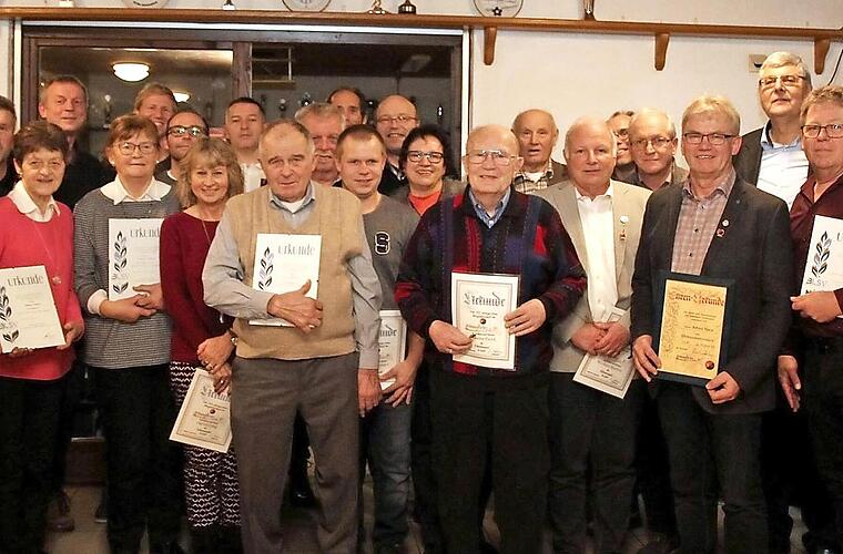 Der Ehrenvorsitzende Rudolf Freund lobte die Arbeit des Vorstands und der Ausschüsse und bat um die Entlastung, die von der Versammlung einstimmig erteilt wurde. Danach nahm Michael Bertsch die Ehrungen vor. Mit der Vereinsnadel in Gold und einer Urkunde für 30-jährige Mitgliedschaft im Verein wurden Ingrid Lang, Christian Schneider, Michael Hübschmann, Johann Funk, Michael Martin, Matthias Teufel, Karl-Heinz Wißlicen und Matthias Schneider geehrt.