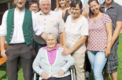 Drosendorf — Im Kreise ihrer vier Töchter, zwölf Enkelkinder, neun Urenkelkinder und zwei Ur-Urenkelkinder feierte Katharina Reeg (vorn) aus Drosendorf ihren 90. Geburtstag. Kathar...