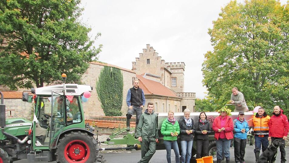 Die letzten Trauben von den Hängen des Schlosses Saaleck in einem geschmückten Ladewagen zum Marktplatz zu transportieren ist alter Brauch beim Bio-Weingut von Ulrike und Thomas Lange. Die Aktion bedeutet das Ende der Lese und soll die Freude über das gelungene Ergebnis zum Ausdruck bringen , wenn dem so ist. "Wir begannen heuer früher mit der Weinlese und hatten eine kürzere Lesezeit, denn die Ernte fiel geringer aus", definiert Ulrike Lange den Wermutstropfen, der in den Rebensaft fiel.