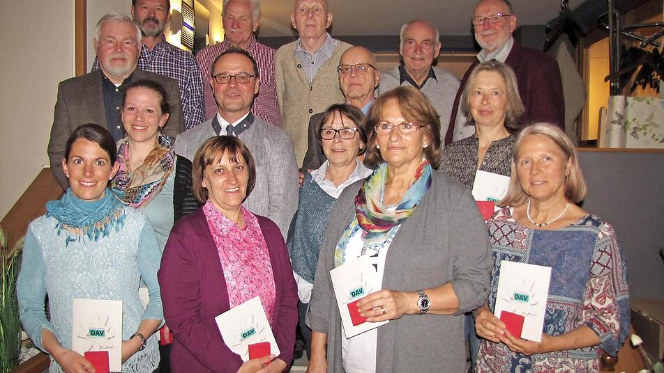 Zahlreiche Mitglieder des DAV Coburg wurden für ihre langjährige Treue geehrt. 25 Jahre dabei sind Andreas Munzert, Anna-Lena Brehm, Lisa Fischer, Johanna Eppler, Rainer Eppler, Renate Ebermann, Guido Berner, Thomas Mühle, Brigitte Gatzer, Norbert-Alexander Gregor, Johanna Fischer, Arno Heusinger, Michael Grummt, Micheal Klink, Bastian Geisthardt, Stepanie Hess, Beatrix Hess, Lothar Schmidt, Peter Tews, Roland Weiss, Joachim Schaal, Sebastian Schaal, Karl Tauss, Brigittte Lorenz, Johanna Beetz, Benno Heigl, Mark Waiblinger, Knut Baumann und Dorothea Schaal.