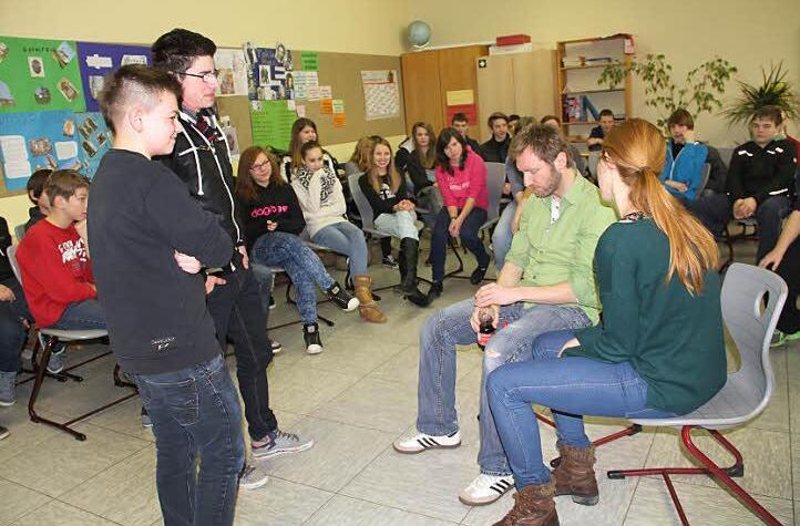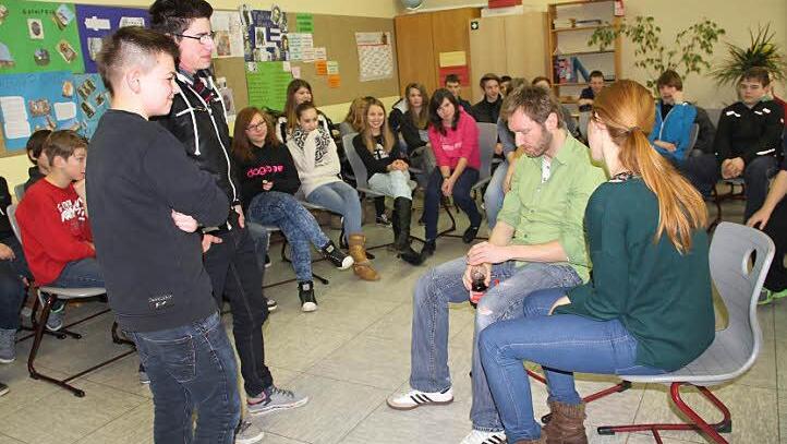 "An welcher Stelle hätte etwas passieren müssen, damit das Theaterstück nicht so dramatisch ausgeht?", lautet die Frage an die jungen Zuschauer. Gemeinsam mit den beiden Schauspielern erarbeiten die Schüler die Gründe, die zu einem exzessiven Alkoholkonsum führen können.