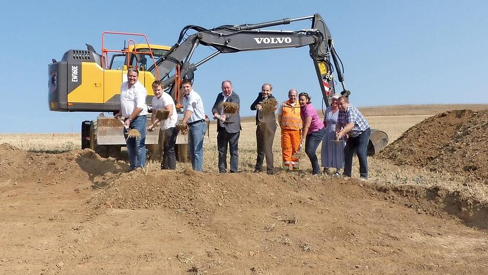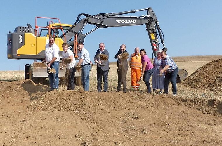 Mit dem offiziellen Spatenstich hat die Baufirma D & Z aus Neudrossenfeld mit der Erschließung der Erweiterung des Baugebiets "Schieferberg III" begonnen. In bester Lage mit dem Gefälle nach Südosten werden im ersten Abschnitt in den nächsten Wochen auf 17 440 Quadratmetern elf Parzellen erschlossen.
