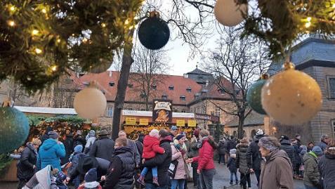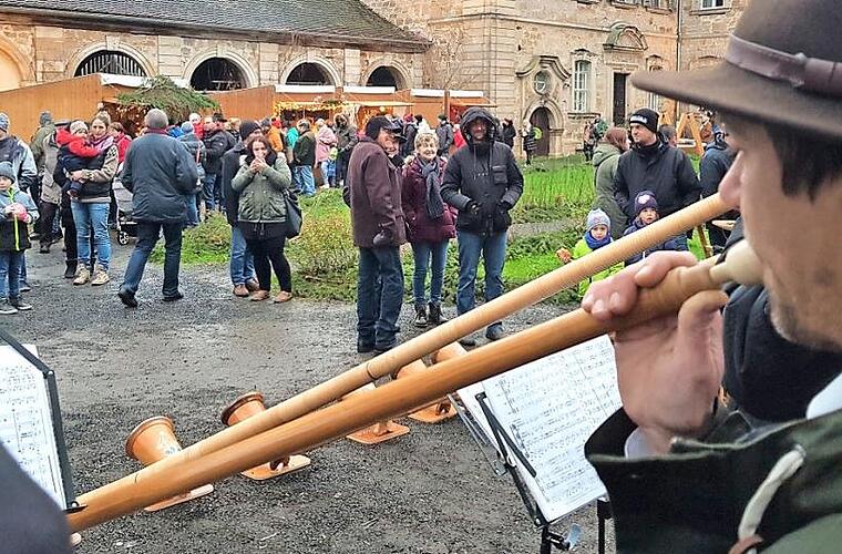 Burgpreppach — Matschpampe statt Schnee - aber sonst alle Ingredienzien, die es für einen stimmungsvollen Weihnachtsmarkt braucht. So ließen sich am Sonntag Tausende von Besuchern von der Schlossweihnacht in Burgpreppach auf das Christfest einstimmen. Im Hof des Deusterschen Wasserschlosses und auf der Straße davor waren es einmal mehr hauptsächlich heimische Vermarkter, Vereine und private Bastler, die vorwiegend selbstgefertigte Waren anboten. Auffallend in Burgpreppach ist Jahr für Jahr, dass die Menschen nicht nur zum Staunen und Einkaufen kommen, sondern Zeit einplanen. Zeit, um gesellig in Grüppchen zusammenzustehen, sich an Feuertonnen oder mit heißen Getränken aufzuwärmen und Momente und Eindrücke zu genießen. So fanden auch die "Schlossberger" aus Hohnhausen, der Alphornbläser Haßberge und der Leuzendorfer Musikanten, die allesamt ihre stimmungsvollsten Weihnachtslieder auspackten, viele dankbare Zuhörer. eki