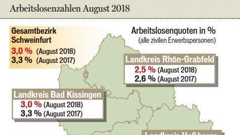 Die positive Entwicklung am Arbeitsmarkt der Region Main-Rhön setzte sich auch im Ferienmonat August fort. Mit 3,0 Prozent wurde die niedrigste Quote in einem August erreicht. Gegenüber dem Vormonat h...