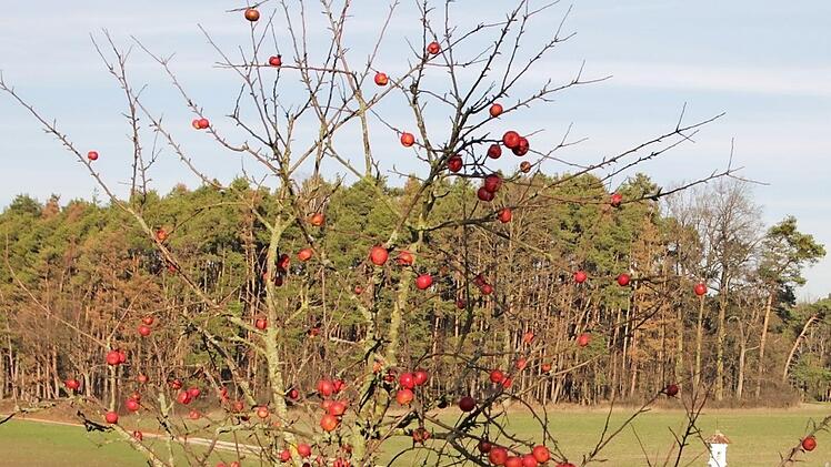 Ingrid Roß aus Ailersbach hat von ihrem Küchenfenster aus einen herrlichen Blick in die Natur. Dabei sticht ihr ein Apfelbaum ins Auge, der noch immer viele rote Äpfel trägt. Spontan ist ihr dazu ein kleiner Vierzeiler eingefallen: "Am Weihnachtsbaum die Kerzen brennen. Am Apfelbaum die Äpfel hängen ..." Und das mitten im Winter. ew/Foto: Andreas Dorsch