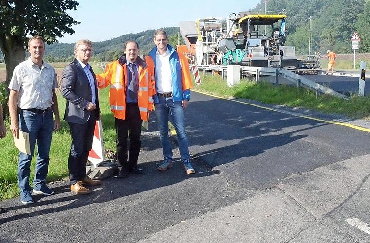 In den nächsten Tagen wird die vier Zentimeter hohe Deckschicht der linken Fahrspur von Pressig nach Neukenroth aufgetragen. Ab Mittwoch wird dann der Verkehr einspurig von Pressig nach Neukenroth auf der neu asphaltierten linken Fahrspur durchlaufen und die rechte Fahrspur Richtung Neukenroth wird aufgefräst, etwa zehn Zentimeter, und dann mit acht Zentimetern Asphaltbindeschicht und mit vier Zentimetern Splittmastixdeckschicht erneuert. Somit werden die Asphaltschichten um zwei Zentimeter verstärkt.
