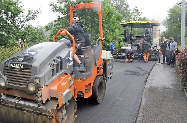 Die neue Asphaltdecke wird derzeit noch aufgetragen. Die Arbeiten, bei denen auch einige Hausanschlüsse verlegt wurden, hielten sich im überschaubaren Kostenrahmen.