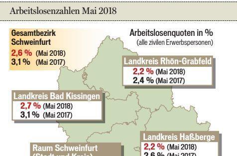 Die erfreuliche Entwicklung auf dem Arbeitsmarkt in der Region Main-Rhön hat sich auch vergangenen Monat fortgesetzt. "Die Arbeitslosenquote von 2,6 Prozent war der niedrigste Monatswert, den wir je i...
