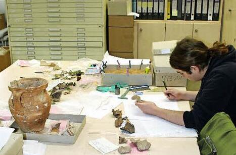 Auch werden Einblicke in die Anfertigung von Grabungsdokumentationen ermöglicht. So kann z.B. im Rahmen der Auswertung von Grabungsunterlagen die Anwendung von CAD-Programmen erlernt werden.