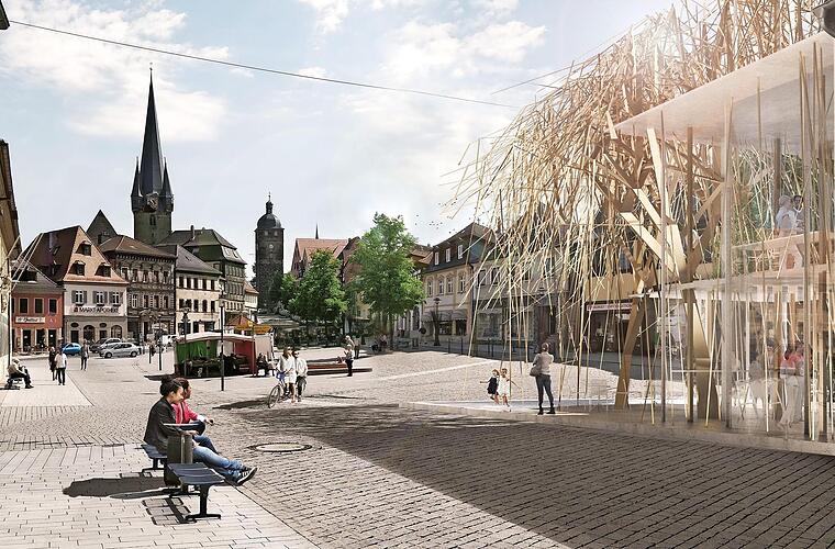 Mit dem "Archiv der Zukunft Lichtenfels" verfolgt R+G das Ziel, einen neuen Ort der Begegnung für alle Bewohner und Besucher der Stadt zu schaffen. Das "Archiv der Zukunft Lichtenfels" soll zum Verweilen einladen und ein anziehendes Licht- und Schattenspiel auf dem Marktplatz bieten.