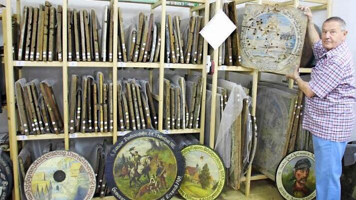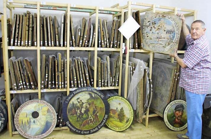 Geschichte Helmut Rauch sammelt alles, was im Zusammenhang mit der Schützengesellschaft Kronach steht. Die alten Scheiben und Dokumente sind in einem klimatisierten Raum untergebracht.