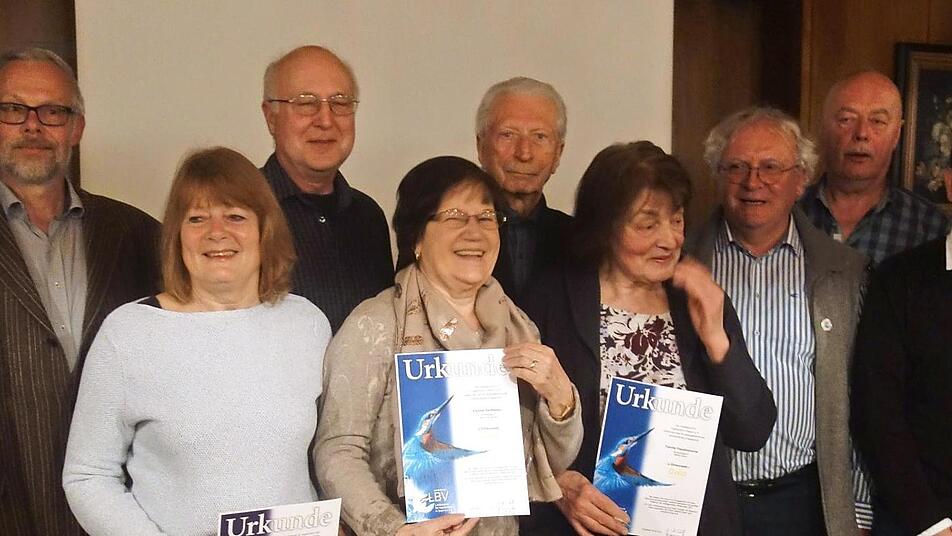 Ehrungen standen an: Ausgezeichnet wurden die Familien Papadopoulos und Senftleben für ihr außergewöhnliches Engagement, Gerhard Leidner für 50 Jahre Mitgliedschaft, Margret Bätz sowie die Familien Gerold Dressel, Klaus Kroedel, Joachim Rückert und Gisbert Wolf für 30-jährige Mitgliedschaft beim LBV.