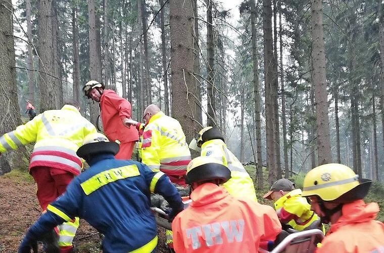 Als weitere Besonderheit sei die akute Einsatzalarmierung zu einem verunfallten Wanderer im Waldbereich auf der Landesgrenze zwischen Friedersdorf (Bayern) und Heinersdorf (Thüringen). Dieser konnte sich nicht mehr orientieren und musste von den Rettungskräften mit äußerst spärlichen Ortsinformationen "gesucht" werden.