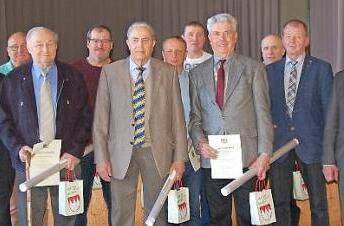 Bereits am Vormittag waren die Siebener mit einer Kirchenparade zum Festgottesdienst in der Burgläurer Pfarrkirche gezogen, bevor es in der voll besetzten Rudi-Erhard-Halle weiterging. "Auch in Zeiten eines hoch technisierten Vermessungszeitalters mit digitalen Flurkarten und GPS-Vermessung sind die ,Siebener‘ unentbehrlich", stellte Bürgermeister Kurt Back die Arbeit der "Hüter der Grenzen" heraus. Positiv fiel der Jahresrückblick von Klaus Hesselbach, dem Vorsitzenden der Feldgeschworenen-Kreisvereinigung, aus.