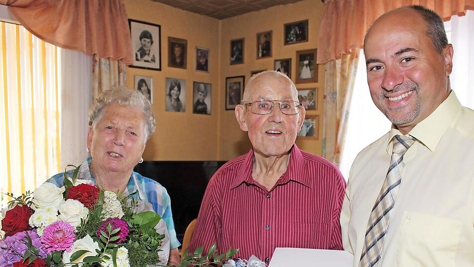 Vor sechzig Jahren haben Ernst und Marga Mietzger, geborene Neumeister, in Rehweiler, Gemeinde Geiselwind, geheiratet. Jetzt feierten sie im Kreis ihrer gro...