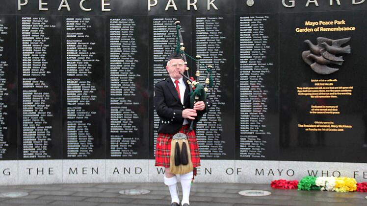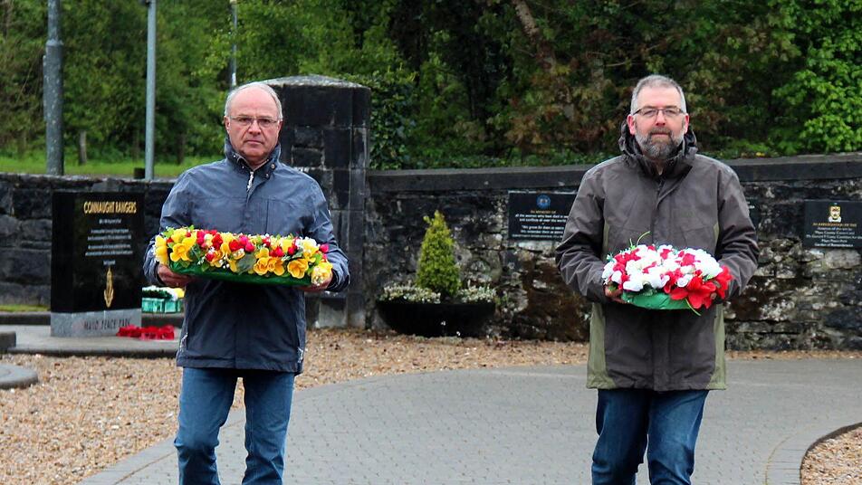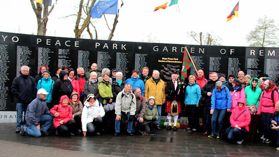 Im Hotel in Castlebar ließen die Pilger einen langen Tag ausklingen. Mit der Führerin Nora Coyne marschierten die Franken am nächsten Morgen zum Peace-Park (Friedenspark), wo sie Kränze für die Verstorbenen aller Kriege niederlegten. Die beiden Priester sprachen ein kurzes Gebet, und ein Dudelsackpfeifer umrahmte den feierlichen Akt.