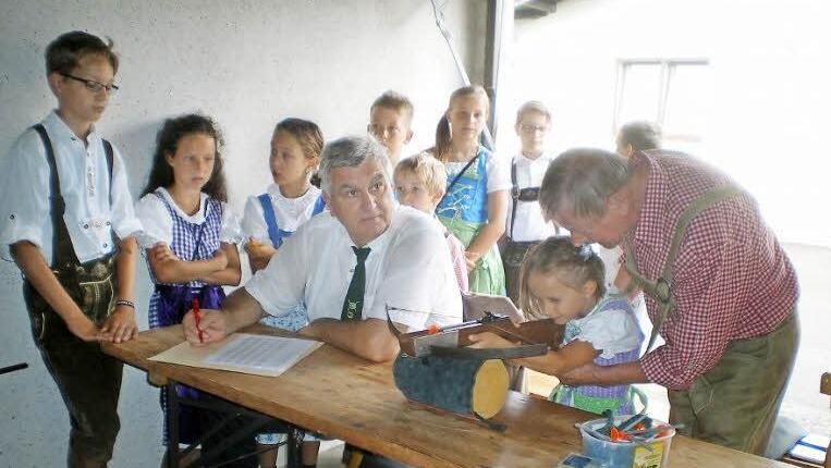 Rothenkirchen — Eine schöne Attraktion, aber auch mit sportlichem Hintergrund, ist der Wettbewerb "Apfel-Biathlon-Scheibenschießen" für die Kinder. Sie feiern somit ihr eigenes Schützenfest auf den Spuren von Wilhelm Tell. Wurde in den vergangenen Jahren beim Schützenfest Rothenkirchen immer am Sonntagnachmittag ein Apfelscheibenschießen erfolgreich durchgeführt, so hatte man dieses Jahr zusätzlich noch einen Biathlon- Scheibenschießen-Wettbewerb für die Kids angeboten Und das wurde ein großer Erfolg beim Schützenfest am Sonntag. Unter fachkundiger Leitung von Edgar Barnickel, Wolfgang Bergmann und Mathias Beetz hatten die Kinder großen Spaß dabei, ihre Treffsicherheit zu üben und sich im fairen Wettbewerb mit gewissem Ehrgeiz zu vergleichen. Dabei erwies es sich recht schwierig, die fünf Biathlon- Scheiben nacheinander mit der Armbrust zu treffen. Es gab hier etliche Gleichstände nach dem Biathlon-Schießen, also musste die Entscheidung im Apfelscheibenschießen fallen. Es wird auf einer Entfernung von circa sechs Metern auf eine Scheibe mit zehn Zentimetern Durchmesser mit einer Kinderarmbrust geschossen. Es werden sogenannte Saugnapfpfeile verschossen, wodurch keine Gefahr für die Schützen oder zuschauenden Kinder besteht. Zur anschließenden Siegerehrung durften die drei Erstplatzierten das Podest besteigen und ihre Urkunde entgegennehmen. Kinderkönig wurde Leon Buckreus, 1. Ritter Tim Fehn und 2. Ritter Yanik Grebner. Die Schützengilde der Erwachsenen, angeführt von Ehrenschützenmeister und 1. Schützenmeister Reinhold Wolf, der wenig später zum Schützenkaiser proklamiert wurde, 2. Schützenmeister Wolfgang Bergmann, Schatzmeister Mathias Beetz und Edgar Barnickel gratulierte allen Teilnehmern per Handschlag.
