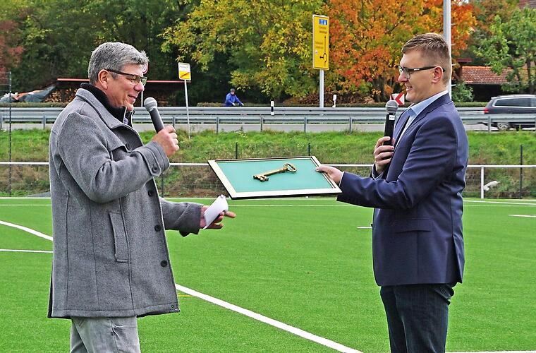 Helmut Hohmann, Erster Vorsitzender des Sportvereins Zapfendorf, freute sich über den Abschluss des Baus, der den Fußballern, insbesondere den Kindern und Jugendlichen, endlich wieder ausreichend Spielmöglichkeiten gewähre. Denn bisher mussten die Nachwuchsmannschaften in Umlandgemeinden trainieren. Die Grüße des Landkreises überbrachte der stellvertretende Landrat Bruno Kellner.