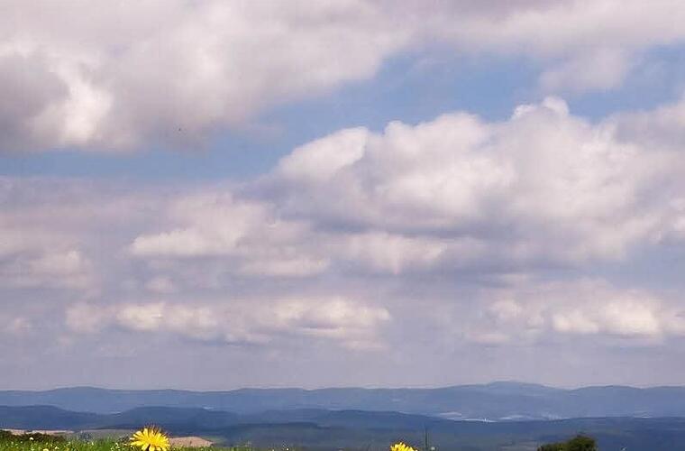 Die Extratour "Vorderrhönweg" ist eine ausgesprochen aussichtsreiche und abwechslungsreiche Wanderung etwas abseits der bekannten Rennstrecken in der Rhön. Die Tour beginnt in dem kleinen thüringischen Dörfchen Hümpfershausen und zieht gleich hinauf in die Rhöner Hügellandschaft. Fast auf der gesamten Strecke reichen die Blicke hinüber zum Thüringer Wald. Daneben sind die Gleichberge ebenso Begleiter auf dieser Tour wie die nahe Geba und der Dolmar, der sich hinter Meiningen erhebt. Die Tour führt nicht nur über Wiesenflächen mit uralten Hutebuchen, sondern zieht auch wieder hinab in Dörfer mit hübschen, alten Ortskernen. Im kleinen Oepfershausen gibt es eine Kunststation, und nahe am Weg liegt die Turmuhrenklause mit einer Ausstellung historischer Turmuhren. Ein Teil des Weges berührt landwirtschaftliche Flure.