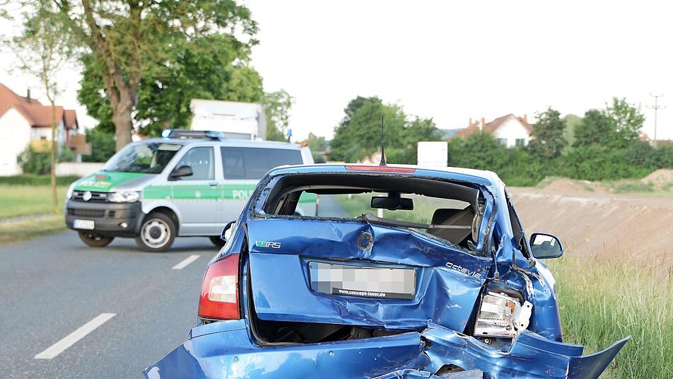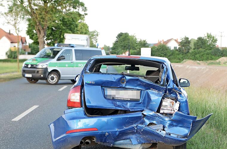 Schney und Michelau kam es am Mittwoch Abend zu einem Auffahrunfall mit drei beteiligten Fahrzeugen. Nach ersten Auskünften der Polizei hatte ein VW Golf aus dem Zulassungsbereich Berlin eine Panne und hielt am Fahrbahnrand an. Ein ihm folgender Skoda erkannte die Situation und verlangsamte seine Fahrzeug. Ein weiteres Fahrzeug, ein Jeep Landrover, erkannte die Situation zu spät und fuhr auf den Skoda auf und schob diesen auf den stehenden Golf.. Dabei wurde der VW auf die linke Fahrbahnseite geschoben. Bei dem Unfall wurden zwei Personen leicht verletzt. Foto: Frank Spitzenpfeil