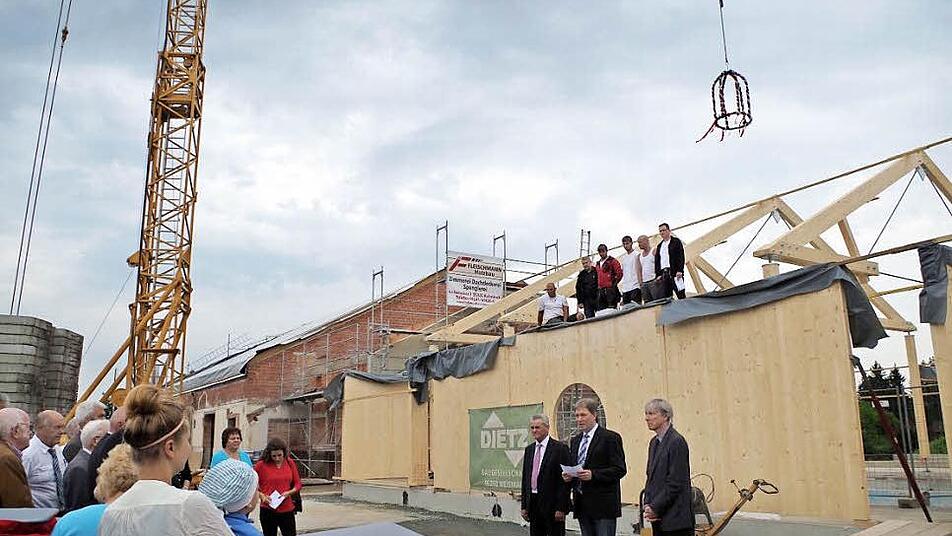 Gestern wurde am Freizeit- und Tourismuszentrum in Steinbach am Wald die Richtkrone hochgezogen. Fünf Millionen Euro werden in das Infrastrukturprojekt investiert.