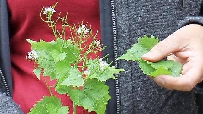 Die Knoblauchrauke schmecke - wie viele Kreuzblütler - leicht scharf, erklärt die Kräuterexpertin. Das sei auf das darin enthaltene Senföl zurückzuführen. Zur Zeit blüht die zweijährige Pflanze überall in großen Mengen. Gemixt mit Löwenzahn und Giersch werde daraus ein wunderbares Pesto (siehe Infobox).