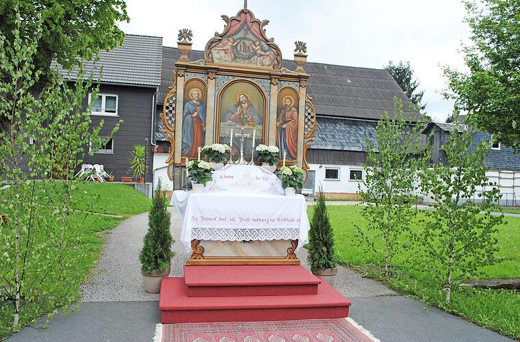 In Windheim wird Fronleichnam seit Jahrhunderten begangen. Dazu gehört auch das Aufbauen des Altars, das traditionell in Familienhänden ist.