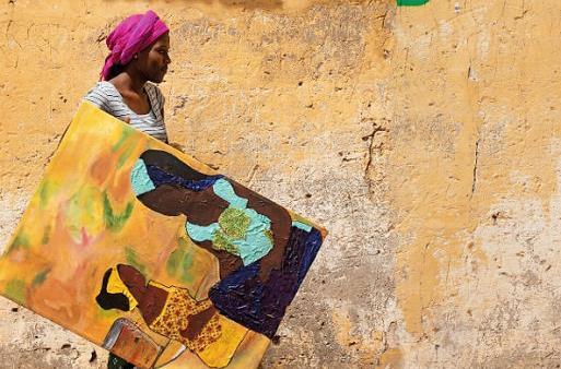 Sieben Künstler aus der Bamberger Partnerdiözese Thiès bieten in einer erstmals zusammengestellten Wanderausstellung Einblick in ihre Heimat - den Senegal. Die meisten sind Autodidakten und haben zu einem eigenen, unverfälschten Stil gefunden. Mit Pinsel, am PC oder mit dem Meißel drücken sie aus, was sie bewegt: die Rolle der Frau in der Gesellschaft, die Bedeutung des traditionellen Stammeswesens, die Spannung zwischen Tradition und Moderne, die drohende Umweltkatastrophe. Und schließlich geben sie dem Überthema "Flucht und Migration" ein Gesicht.