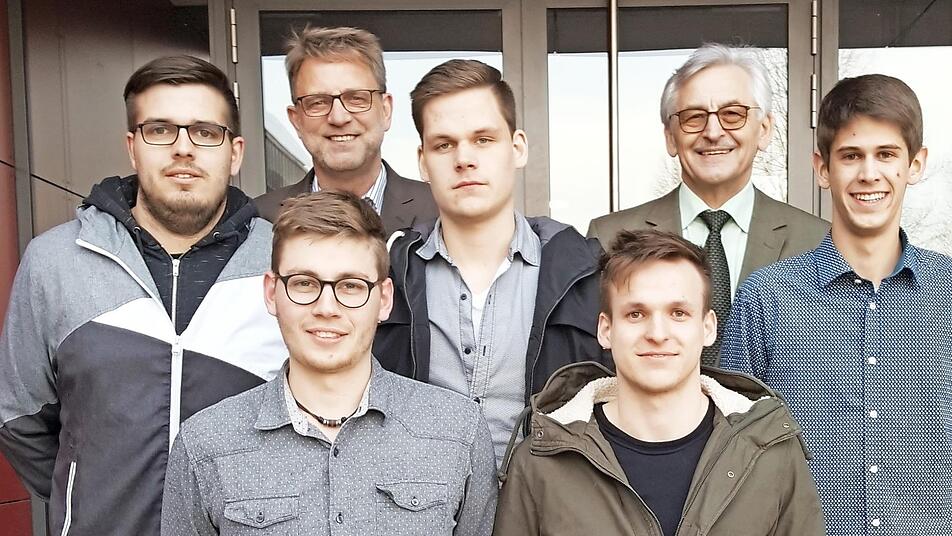 Darüber hinaus wurden auch die "Abgänger" geehrt, die im Abschlusszeugnis eine Note von 1,5 oder besser erreicht haben. Ihnen wurde eine Anerkennungsurkunde der Regierung überreicht. Folgende ehemalige Siemens-Azubis konnten stolz auf ihr Ergebnis sein: Klaus Bauer (Bad Königshofen), Andreas Denner (Kleinwenkheim), Jan Murk (Bad Kissingen) und Niklas Walter (Unterweißenbrunn).