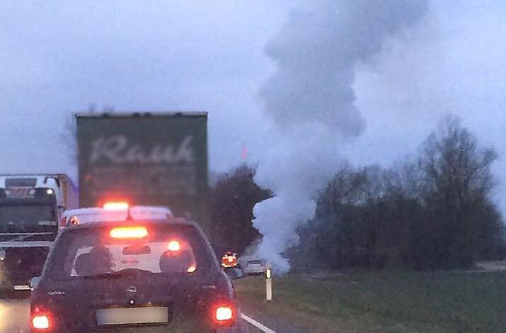 Die Feuerwehr löschte den brennenden Wagen, dessen Rauchsäule weithin zu sehen war. Auch das Rote Kreuz war vor Ort, musste jedoch nicht eingreifen, denn verletzt wurde niemand. Der Sachschaden am Citroen C5 wird von der Polizei auf etwa 10 000 Euro geschätzt.