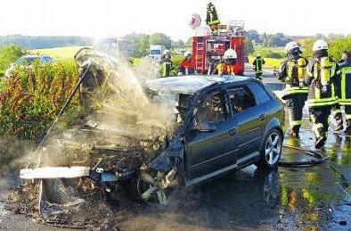 Ein Auto geriet gestern früh gegen 7 Uhr nach einem Auffahrunfall auf der A3 auf Höhe Buch in Brand. Verletzt wurde zum Glück niemand. Personen befanden sic...