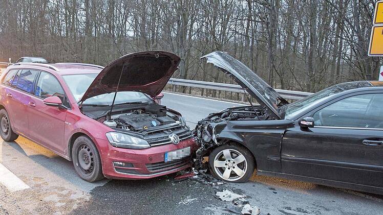 Theres wurde eine Frau leicht verletzt. Der Sachschaden ist erheblich. Am Mittwoch gegen 18 Uhr wollte den Angaben der Haßfurter Polizei zufolge ein 27-jähriger Mann aus Thüringen, der mit seinem Mercedes auf dem A 70-Zubringer aus Richtung Theres unterwegs war, nach links auf die Autobahn in Richtung Bamberg abbiegen. Aus bisher unbekanntem Grund übersah er den Wagen einer Frau, die ihm mit ihrem VW Golf entgegenkam. Die beiden Autos stießen frontal zusammen, so dass an beiden Fahrzeugen die Airbags ausgelöst wurden. Eine Frau im Mercedes des 27-Jährigen wurde am Kopf leicht verletzt und deshalb vom Rettungsdienst vor Ort behandelt. An den Fahrzeugen entstand ein Schaden von rund 15 000 Euro. Die Autos waren laut Polizei-Angaben so stark demoliert, dass sie abgeschleppt werden mussten. Die Feuerwehren aus Obertheres und Horhausen waren mit mehr als 30 Einsatzkräften vor Ort, kümmerten sich um die Verkehrsregelung und beseitigten ausgelaufene Betriebsstoffe. Foto: René Ruprecht