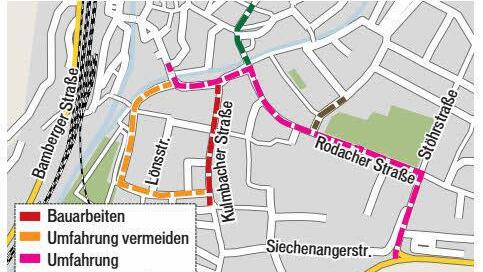 Sperrung Wegen der Baustelle in der Kulmbacher Straße kommt es dort und in der Rodacher Straße in Kronach zu Stauungen.