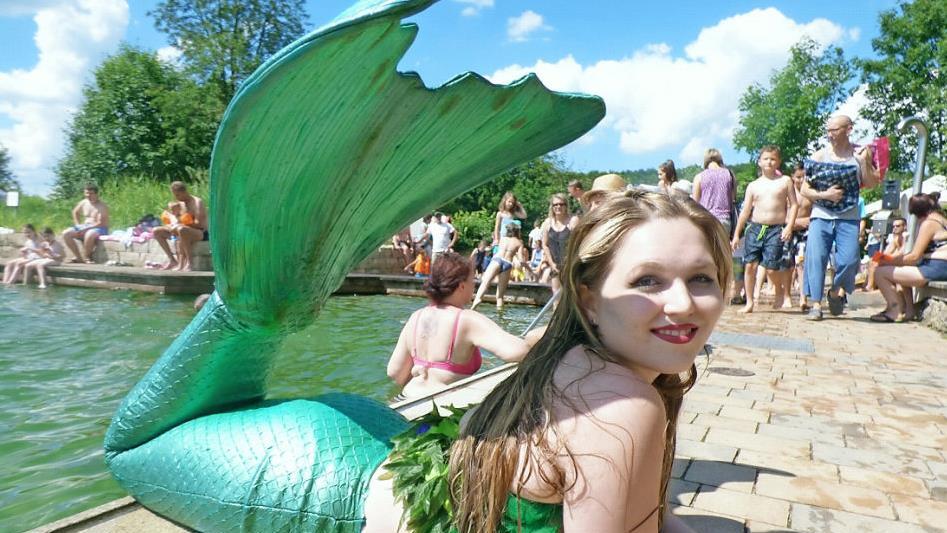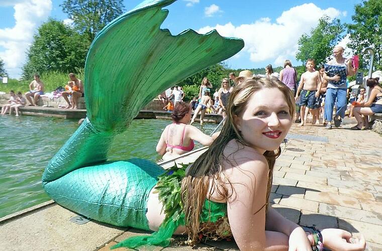 Als neue Attraktion waren die drei vom Förderverein angeschafften Wasserlaufbälle ständig im Einsatz. Und sogar eine professionelle Meerjungfrau namens "Blubber Muschel" stieg aus den "Fluten" des Höhenschwimbades empor, um sich am Beckenrand zu sonnen.