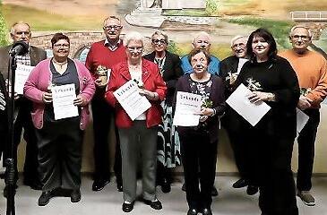 Danach begrüßte der Gesangverein die Gäste in der festlich geschmückten Zehnthalle Aschach mit einem Sektempfang. Durch das abwechslungsreiche Programm führte Schriftführer Norbert Schmitt. Die Vorsitzende Waltraude Wirsching und die Sängerinnen Katharina Holzheimer und Ute Weissenberger hielten in ihren Beiträgen Rückblicke und Gedanken zur Bedeutung des Vereinslebens und des Chorgesangs.