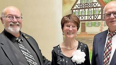 Wolfgang Sittler (von links) und 1. Vorsitzende Waltraude Wirsching, die für 70 Jahre aktives Singen im Verein geehrt wurde, mit Elmar Brehm.