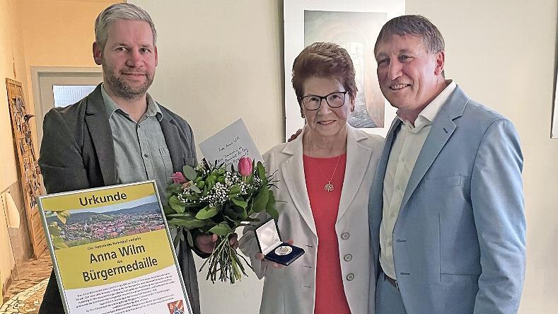 Wie in den vergangenen Jahren nutzte der Bürgermeister die Gelegenheit, verdiente Bürgerinnen und Bürger sowie Vereine für ihre Leistungen und ihr Engagement zu ehren. Neben der Ehrenbürgerschaft stellt die Bürgermedaille eine besondere Auszeichnung dar, die die Gemeinde an verdiente Bürgerinnen und Bürger verleihen kann. Bislang wurde diese Ehrung ausschließlich Männern zuteil. Nun beschloss der Gemeinderat, Anni Wilm mit der Bürgermedaille auszuzeichnen.