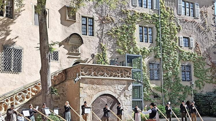 Um beim Wiederaufbau der Kissinger Hütte zu helfen, laden die Alphornbläser Schwarze Berge, die Lauertaler Alphornbläser und Rhöner Alphornklang mit Unterstützung der Museen Schloss Aschach zu einem Benefizkonzert ein. Im Rahmen der Saisoneröffnung der Museen erklingen am Sonntag, 30. März, um 11 Uhr im Schlosshof die Alphörner – als Zeichen der Hoffnung und Solidarität, heißt es in einer Pressemitteilung der Museen Schloss Aschach. Der Eintritt für das Konzert ist frei. Um Spenden zugunsten der Kissinger Hütte wird gebeten, so die Pressemeldung. Foto: Erika Pascher