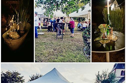Die alten Mauern umrahmten einen mit Lampions und romantischen Lichtelementen dekorierten Garten. Nicht nur glitzernde Lichter, sondern auch strahlende Augen zauberte der Obst- und Gartenbauverein Thulba in die Gesichter seiner Gäste. Bei bestem Wetter verwöhnten die OGVler die Besucher mit erlesenen Weinen und kleinen Leckereien.