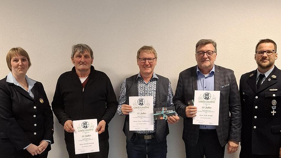 Ein zentraler Punkt des Abends waren die Ehrungen. Für ihre 50-jährige Vereinszugehörigkeit wurden Frido Bocklet, Arnold Farnung sowie Franz Mahlmeister ausgezeichnet.