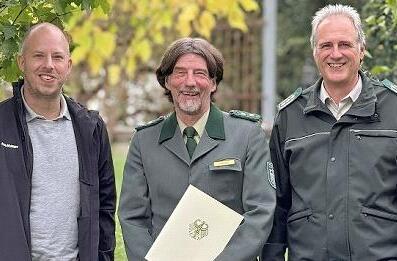Stefan Haas, Leiter der Hauptstelle Organisation und Personal in der Direktion München, sowie Thomas Gundelach, stellvertretender Leiter des Bundesforstbetriebs Reußenberg, überbrachten Glückwünsche und bedankten sich bei Frank Haßlinger für sein langjähriges Engagement.