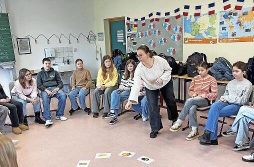 Sie hat die junge Französin Callyssandre aus der Normandie eingeladen, um den Schülern die französische Sprache spielerisch näherzubringen.